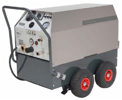 De krachtige 18.000 Watt Jetsteamer is van het hoogste kwaliteitsniveau in de stoomtechniek. Deze machine is uitgerust met de hoogwaardigste onderdelen, RVS behuizing, geavanceerde electronica en vele praktische voorzieningen, zoals een automatisch watervulsysteem. Maar vooral het gepatenteerde persluchtsysteem is het noemen waard. Dit geļntegreerde systeem met de mogelijkheid om perslucht te combineren met stoom is een revolutionaire reinigingsmethode. Deze methode met stoom, perslucht en reinigingsmiddel is in veel gevallen een wezenlijk goedkoper alternatief voor droogijsstralen. Voor deze machine is eenvoudig geen alternatief.